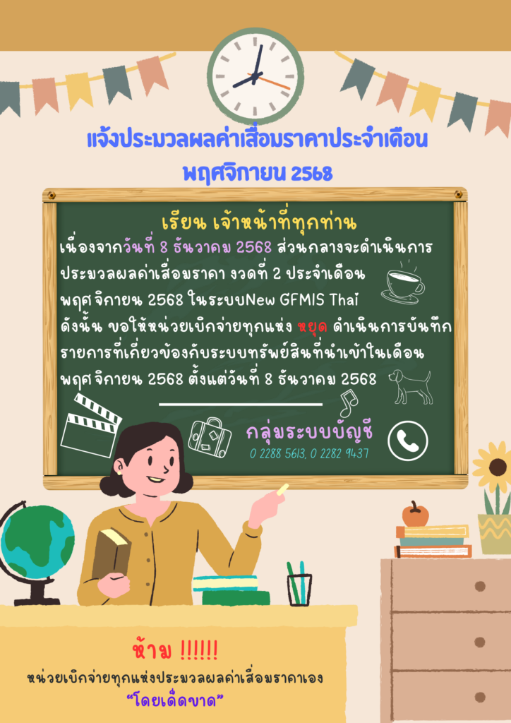 แจ้งประมวลผลค่าเสื่อมราคาประจำเดือน พฤศจิกายน 2568